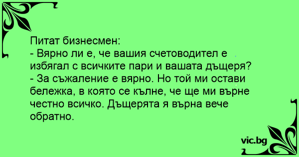 • Вицове от Facebook от нашата страница https://www.facebook.com/www.vic.bg