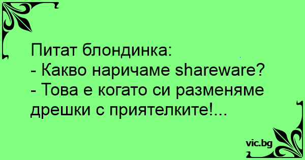 • Вицове от Facebook от нашата страница https://www.facebook.com/www.vic.bg