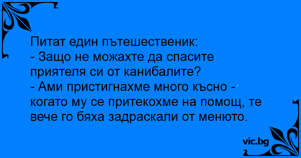 - Защо не можахте да спасите приятеля си от канибалите?