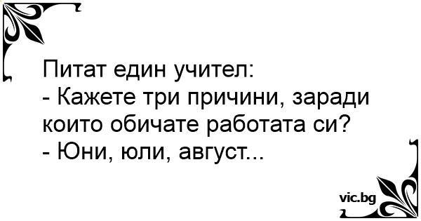 У вчителя запитують: — Назвіть три причини, через які ви любите свою роботу? — Червень липень серпень...