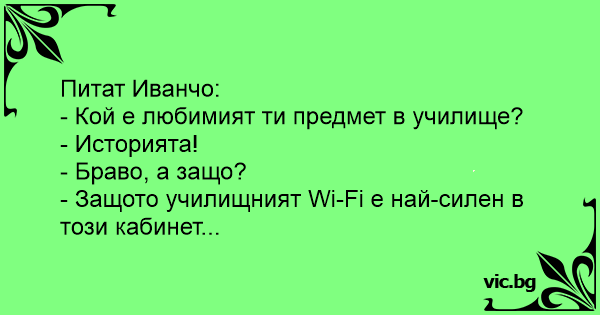 - Защото училищният Wi-Fi e най-силен в този кабинет...