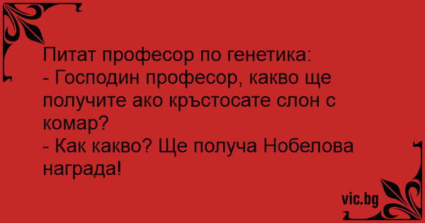- Господин професор, какво ще получите ако кръстосате слон с комар?
