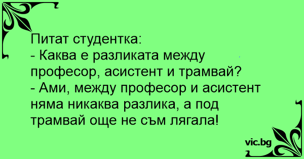 - Ами, между професор и асистент няма никаква разлика, а под трамвай още не съм лягала!