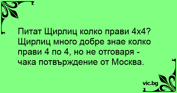 Питат Щирлиц колко прави 4х4?