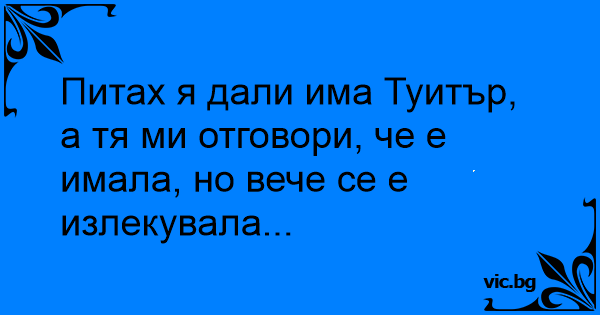 Питах я дали има Туитър, а тя ми отговори, че е имала, но вече се е излекувала...