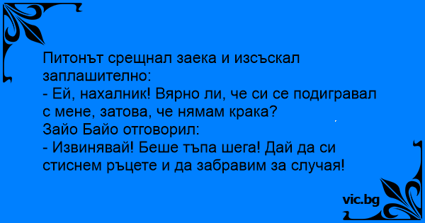 Питонът срещнал заека и изсъскал заплашително: