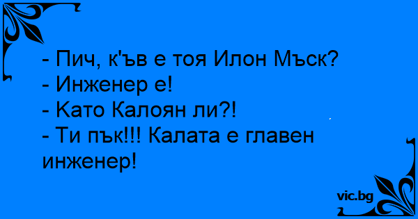 - Пич, к'ъв е тоя Илон...