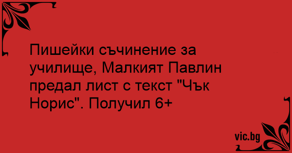 Пишейки съчинение за училище, Малкият Павлин предал лист с текст "Чък Норис". Получил 6+