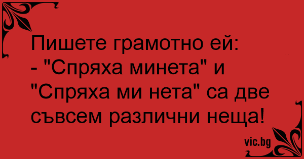 - "Спряха минета" и "Спряха ми нета" са две съвсем различни неща!