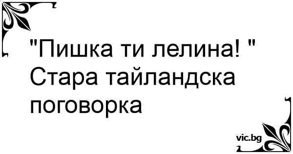 "Пишka ти лелина! " Стара тайландска поговорка