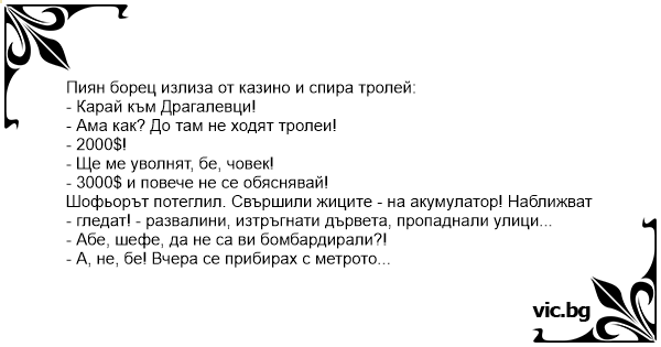 • Вицове от Facebook от нашата страница https://www.facebook.com/www.vic.bg