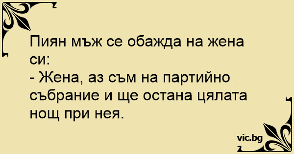 - Жена, аз съм на партийно събрание и ще остана цялата нощ при нея.