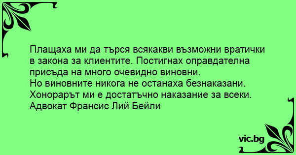 Но виновните никога не останаха безнаказани. Хонорарът ми е достатъчно наказание за всеки.
