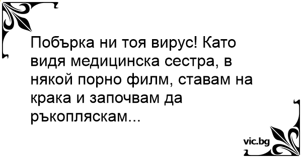Побърка ни тоя вирус! Като видя медицинска сестра, в някой пopнo филм, ставам на крака и започвам да ръкопляскам...