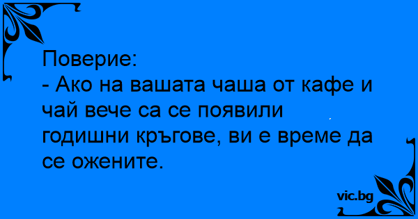 - Ако на вашата чаша от кафе и чай вече са се появили годишни кръгове, ви е време да се ожените.