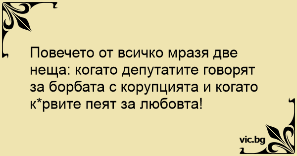 Повечето от всичко мразя две неща: когато депутатите говорят за борбата с корупцията и когато курвите пеят за любовта!