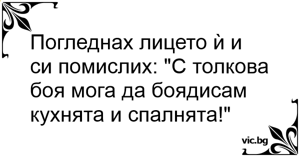 Погледнах лицето ѝ и си помислих: "С толкова боя мога да боядисам кухнята и спалнята!"