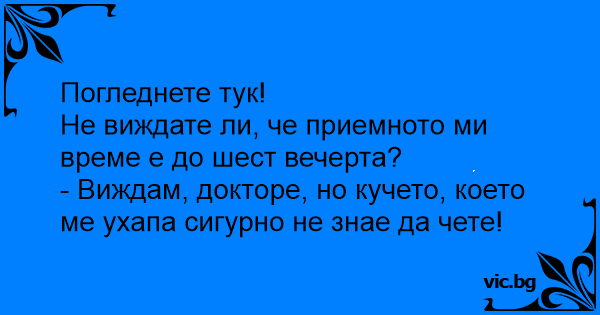 - Виждам, докторе, но кучето, което ме ухапа сигурно не знае да чете!
