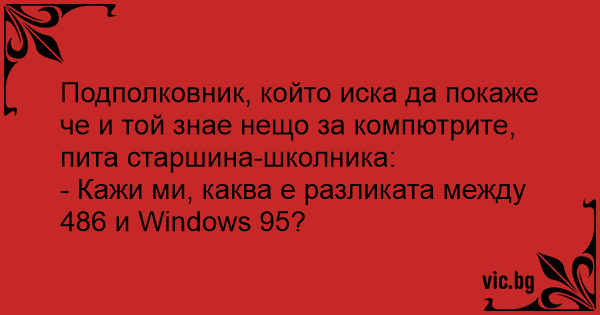 - Кажи ми, каква е разликата между 486 и Windows 95?