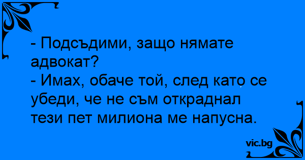 • Вицове от Facebook от нашата страница https://www.facebook.com/www.vic.bg