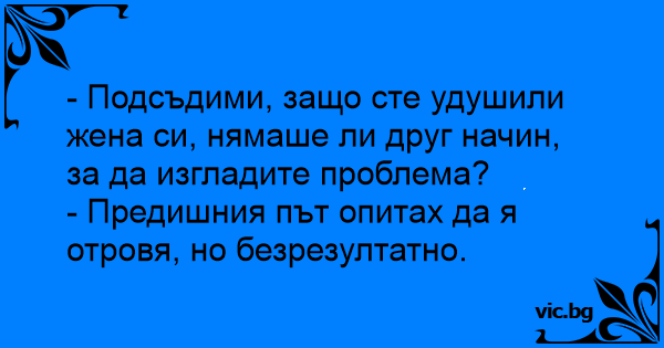 - Подсъдими, защо сте удушили жена си, нямаше ли друг начин, за да изгладите проблема?