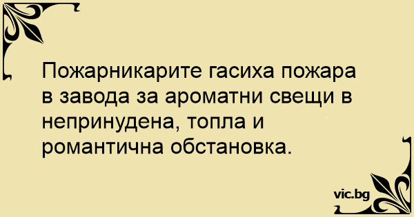 Пожарникарите гасиха пожара в завода за ароматни свещи в непринудена, топла и романтична обстановка.