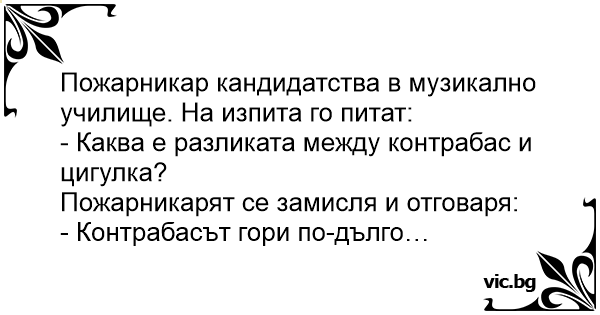 Пожарникар кандидатства в музикално училище. На изпита го питат: