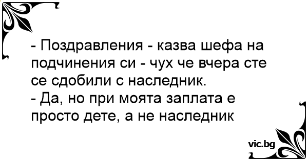 - Поздравления - казва шефа на подчинения си - чух че вчера сте се сдобили с наследник.