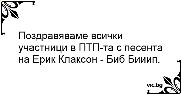 Поздравяваме всички участници в ПТП-та с песента на Ерик Клаксон - Биб Бииип.
