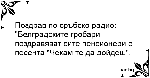 "Белградските гробари поздравяват сите пенсионери с песента "Чекам те да дойдеш".