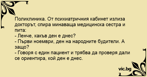 • Вицове от Facebook от нашата страница https://www.facebook.com/www.vic.bg