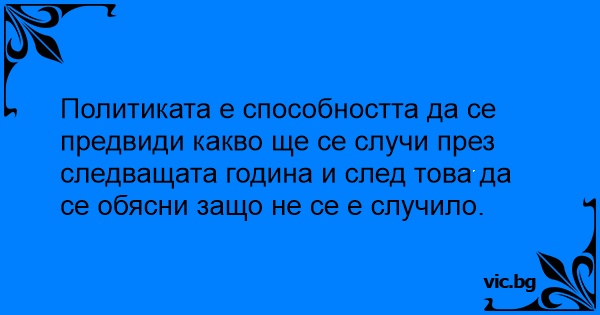 "Egy politikusnak meg kell tudni mondani, hogy mi fog történni holnap, a következő héten, hónapban vagy évben. És később meg kell tudnia magyarázni, hogy ezek miért nem történtek meg." Winston...