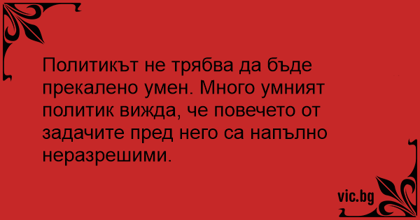 Политикът не трябва да бъде прекалено умен. Много умният политик вижда, че повечето от задачите пред него са напълно неразрешими.