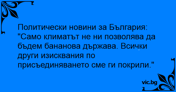 "Само климатът не ни позволява да бъдем бананова държава. Всички други изисквания по присъединяването сме ги покрили."