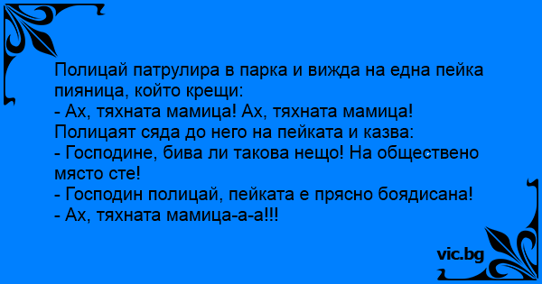 Полицаят сяда до него на пейката и казва: