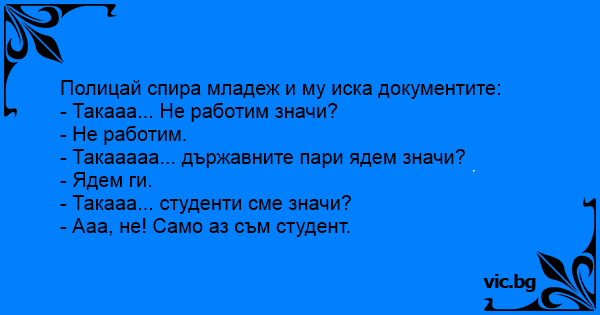 • Вицове от Facebook от нашата страница https://www.facebook.com/www.vic.bg