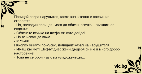 - Но, господин полицая, мога да обясня всичко! - възкликнал водачът.