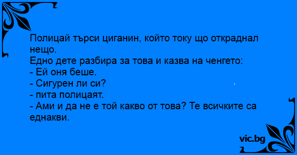 Полицай търси циганин, който току що откраднал нещо.