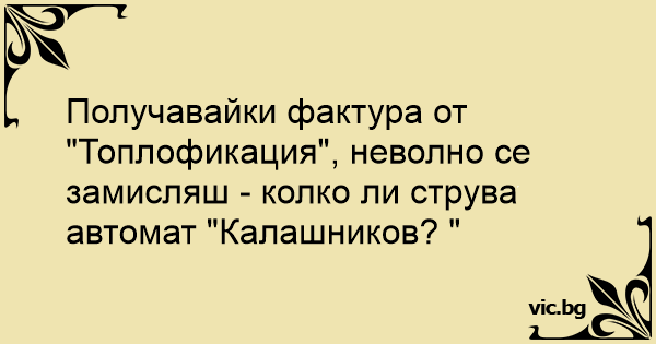 Получавайки фактура от "Топлофикация", неволно се замисляш - колко ли струва автомат "Калашников? "