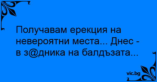 Получавам ерекция на невероятни места... Днес - в з@дника на балдъзата...