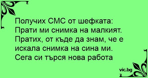 Получих СМС от шефката: Прати ми снимка на малкият.