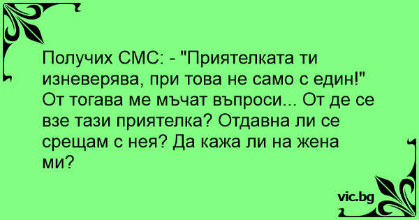 Получих СМС: - "Приятелката ти изневерява, при това не само с един!"