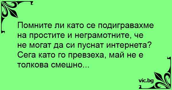 Помните ли като се подигравахме на простите и неграмотните, че не могат да си пуснат интернета?