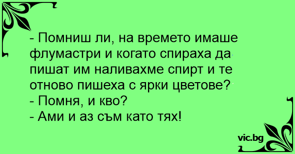 - Помниш ли, на времето имаше флумастри и когато спираха да пишат им наливахме спирт и те отново пишеха с ярки цветове?