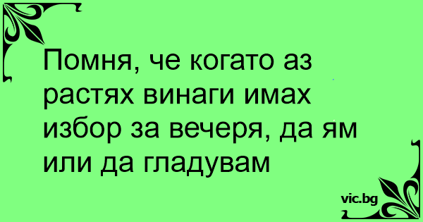 Помня, че когато аз растях винаги имах избор за вечеря, да ям или да гладувам