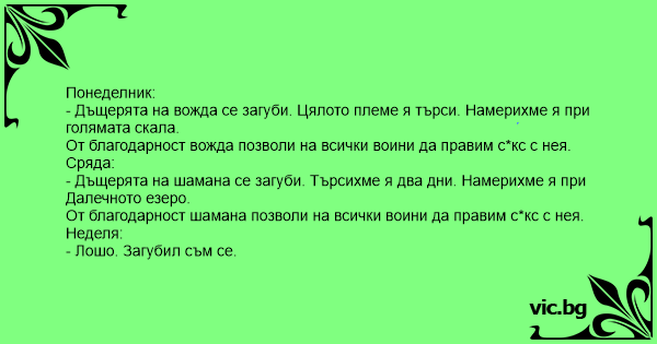 • Вицове от Facebook от нашата страница https://www.facebook.com/www.vic.bg