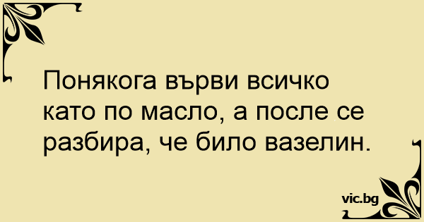 Понякога върви всичко като по масло, а после се разбира, че било вазелин.
