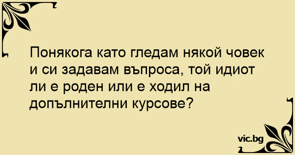 Понякога като гледам някой човек и си задавам въпроса, той идиot ли е роден или е ходил на допълнителни курсове?
