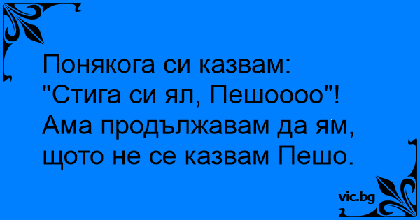 Понякога си казвам: "Стига си ял, Пешоооо"!