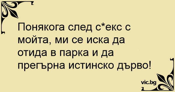 Понякога след cekc с мойта, ми се иска да отида в парка и да прегърна истинско дърво!
